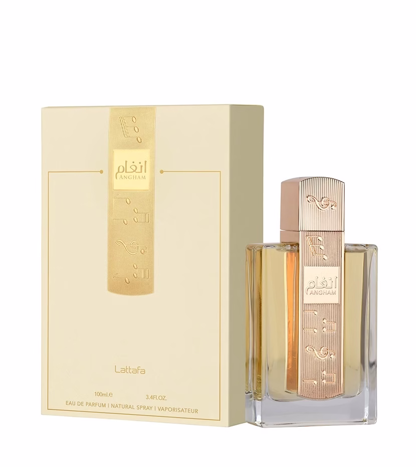 Angham de Lattafa Perfumes es una fragancia de la familia olfativa Oriental Vainilla para Hombres y Mujeres. Las Notas de Salida son jengibre, mandarina y pimienta rosa; las Notas de Corazón son lavanda, praliné, cacao y jazmín; las Notas de Fondo son vainilla, ámbar y almizcle.