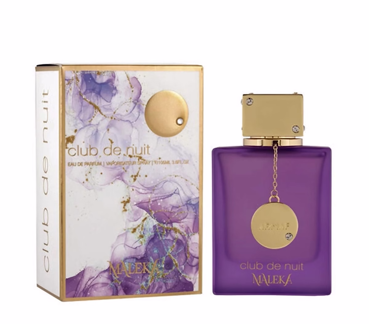 Club De Nuit Maleka de Armaf es una fragancia de la familia olfativa Floral Frutal para Mujeres. La Nariz detrás de esta fragancia es Olivier Cresp. Las Notas de Salida son lichi, bergamota y pimienta rosa; la Nota de Corazón es raíz de lirio; las Notas de Fondo son praliné, sándalo y ambroxán.