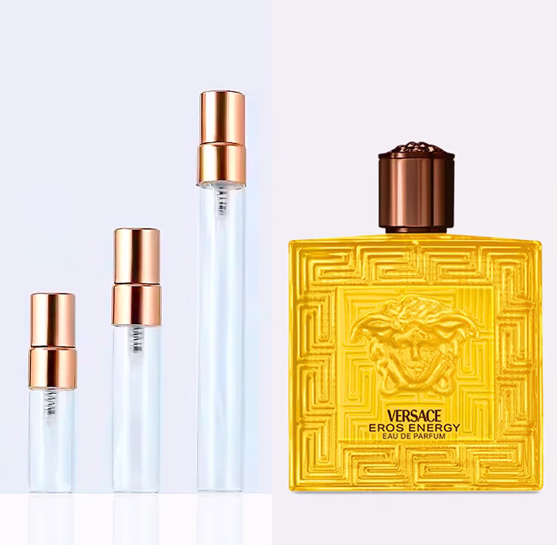 Eros Energy de Versace es una fragancia de la familia olfativa Cítrica Aromática para Hombres. Las Notas de Salida son limón (lima ácida), lima (limón verde), toronja (pomelo), naranja sanguina, bergamota de Sicilia y mandarina; las Notas de Corazón son pimienta rosa, ámbar blanco y grosellas negras; las Notas de Fondo son almizcle, musgo de roble y pachulí.
